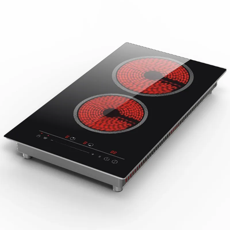 Новая вертикальная двухконфорочная электрическая керамическая плита впечатляет! Общая мощность 3200 Вт коммерческого уровня, инновационные вертикальные никель-хромовые нагревательные элементы, максимальная мощность одной зоны — 1800 Вт для интенсивной жарки. Патентованная технология «вертикальное мгновенное кольцо» разогревает плиту за 4 секунды до 500℃, обеспечивая профессиональный уровень кулинарии. Немецкая вертикальная керамическая панель Schott выдерживает температуру до 900℃, устойчивость к царапинам увеличена на 65%, жир и загрязнения легко удаляются, поверхность сохраняет зеркальный блеск даже при длительном использовании.